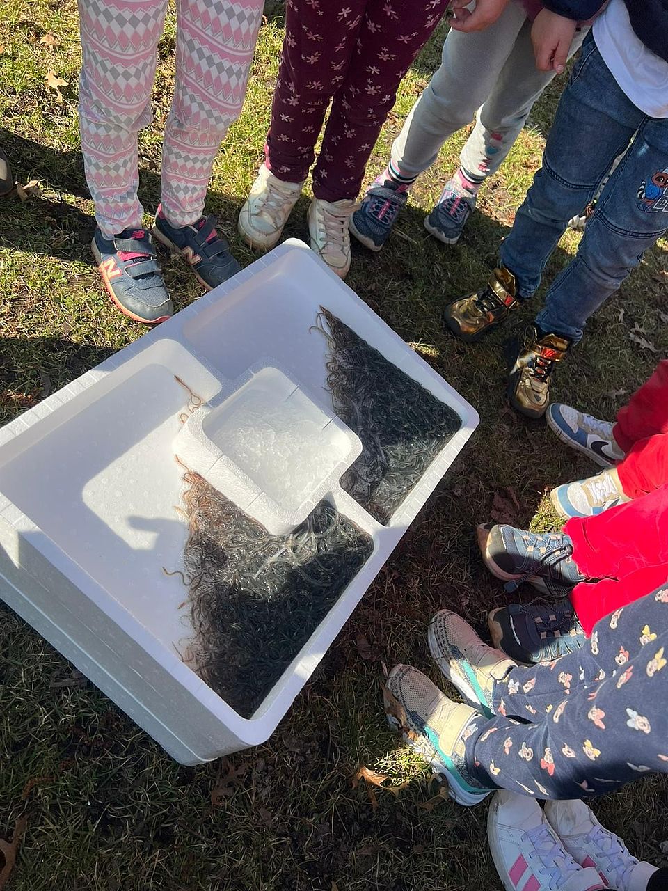 Gemeinsam mit den Fischern durften unsere kleinen Entdecker dabei helfen, tausende winzige Glasaale in den See einzusetzen.