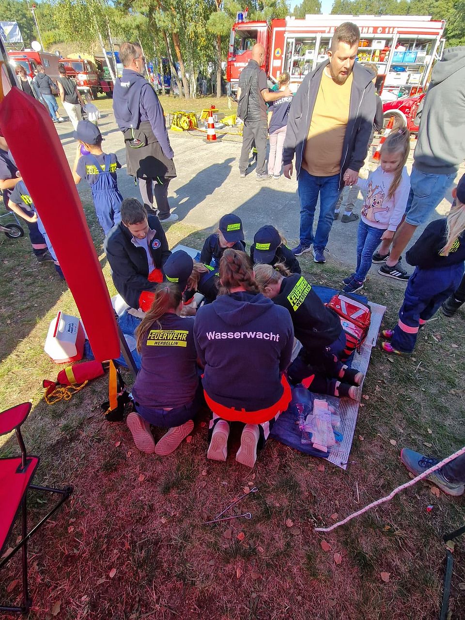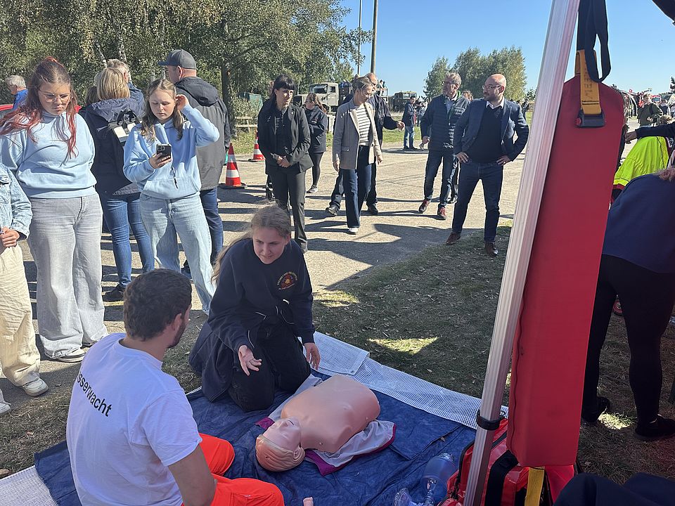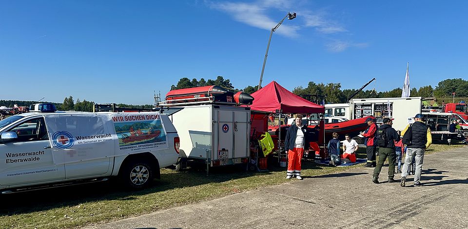 Die Wasserwacht Eberswalde präsentierte sich beim Blaulichttreffen BTB2025 im Luftfahrtmuseum Finowfurt mit eigenem Stand, Reanimationstraining und moderner Technik – inklusive prominenter Besucher wie dem Innenminister Brandenburgs.